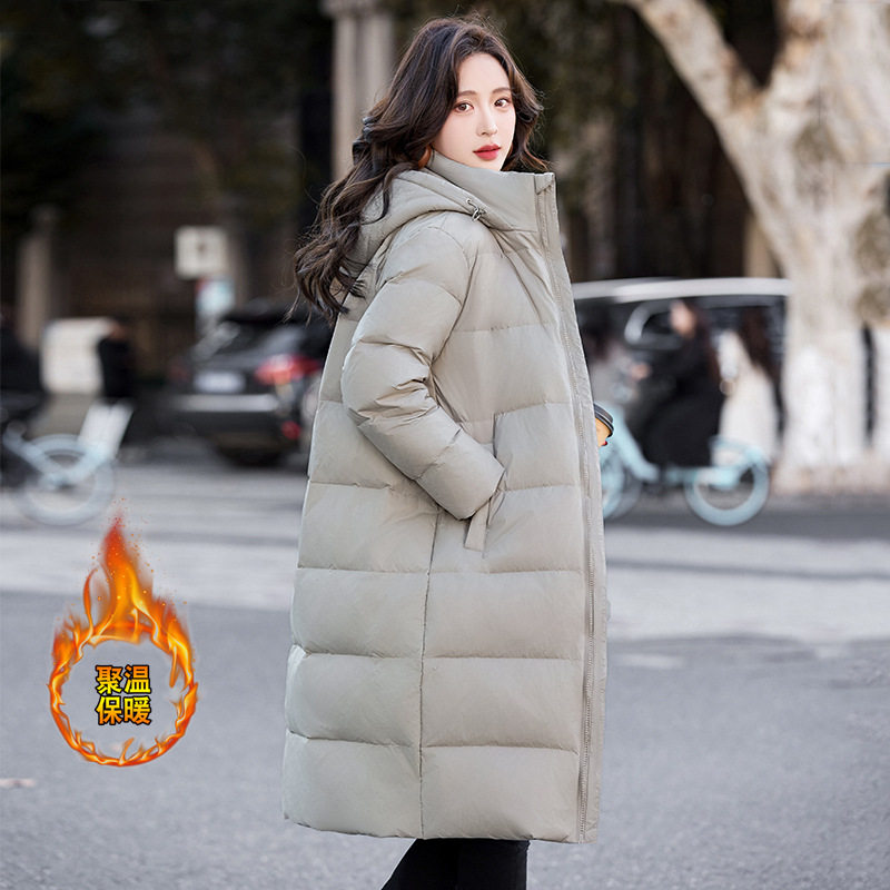 欧洲站高端时尚90白鹅绒中长款连帽加厚羽绒服外套女韩版显瘦保暖