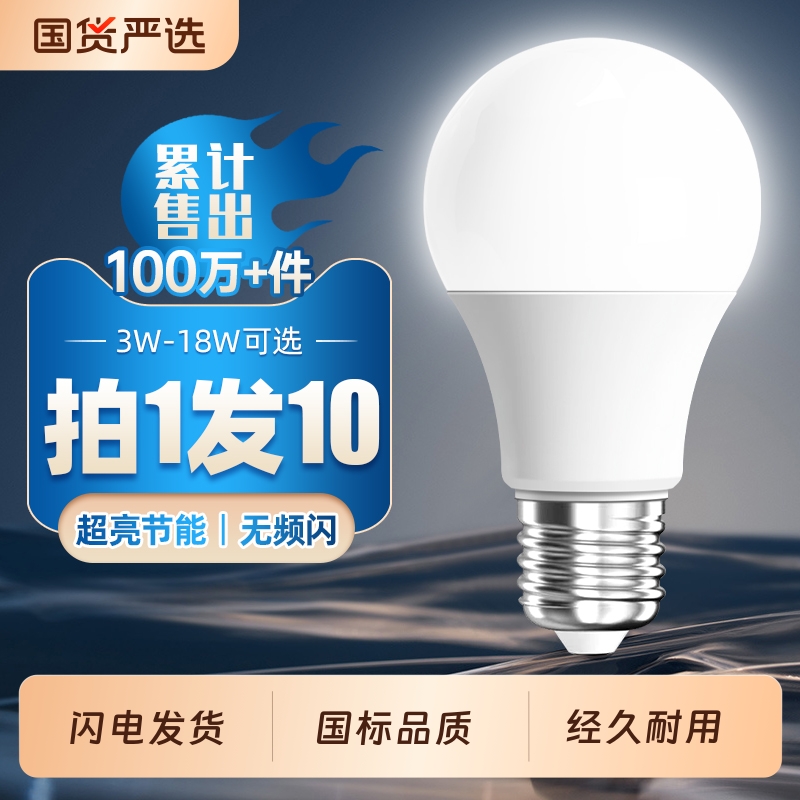 led灯泡e27螺口3W5W7W9W18W超亮室内家用照明暖黄白光源球泡省电