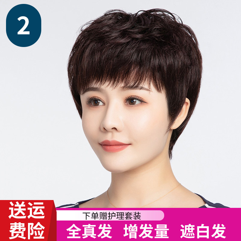 新款假发女短发真发发套时尚中年女士假发短卷发全真发自然全头套