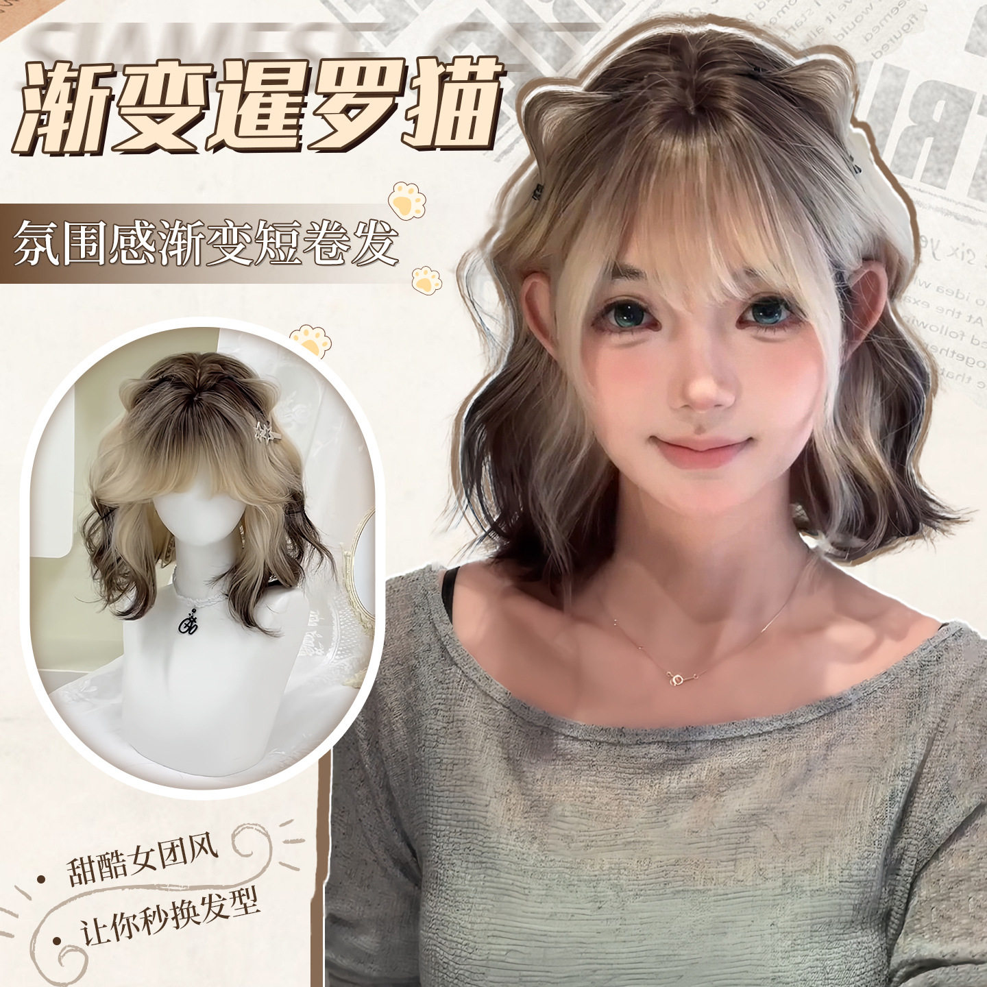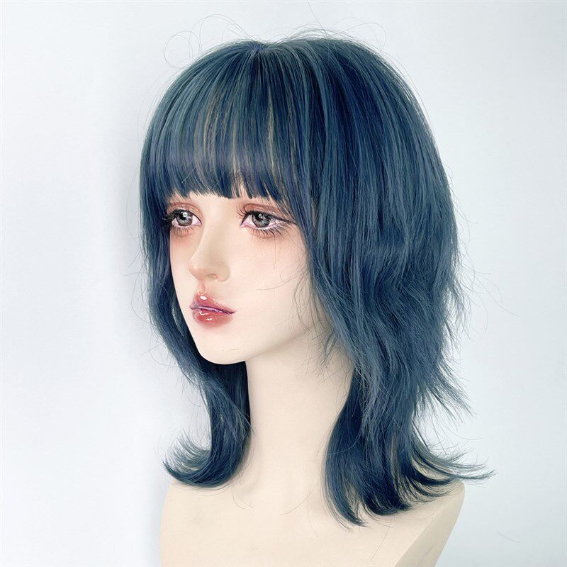 蓝色假发短卷发狼尾鲻鱼头全头套女男少年帅气日系酷潮lolita彩色