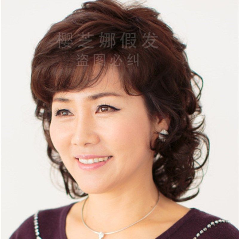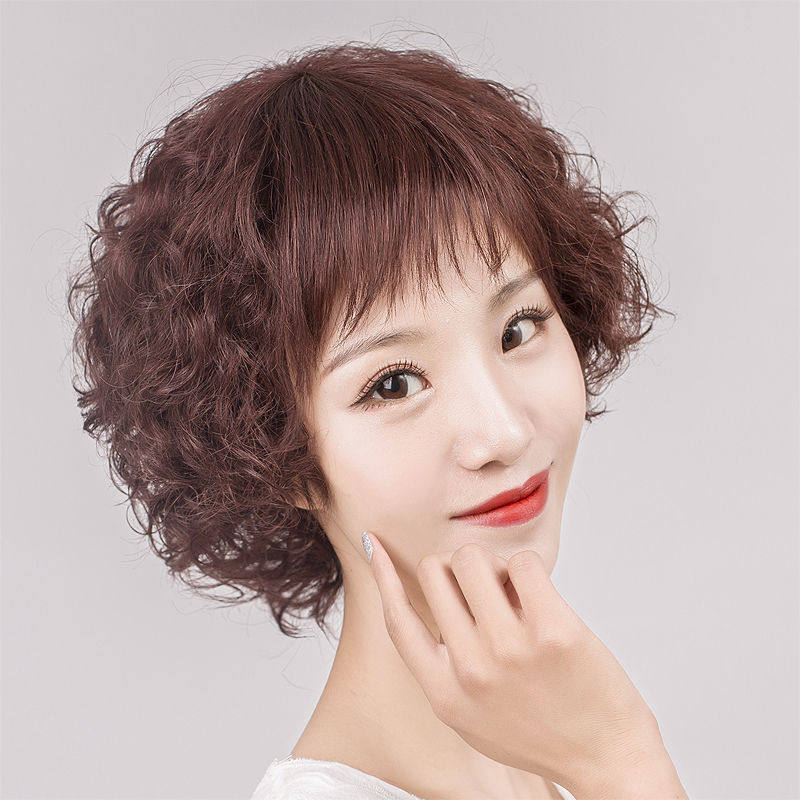 中老年假发送妈妈中年女士假发短卷发自然蓬松逼真仿真带圆顶头皮