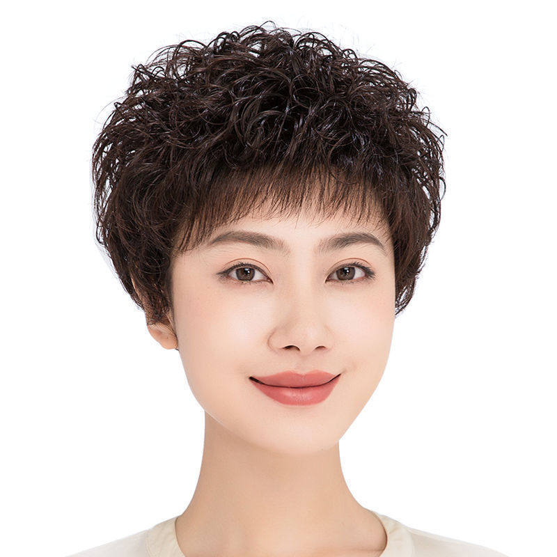真发假发套女短发妈妈中老年假发短卷发中年女士化疗假发真人发丝