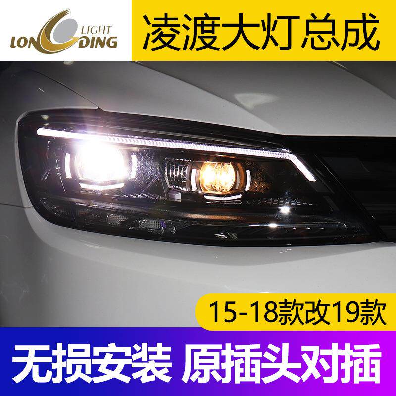时宇凌渡大灯总成 15-18款凌渡LED大灯改装透镜旧改新款LED日行灯