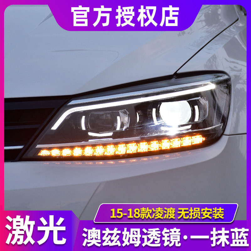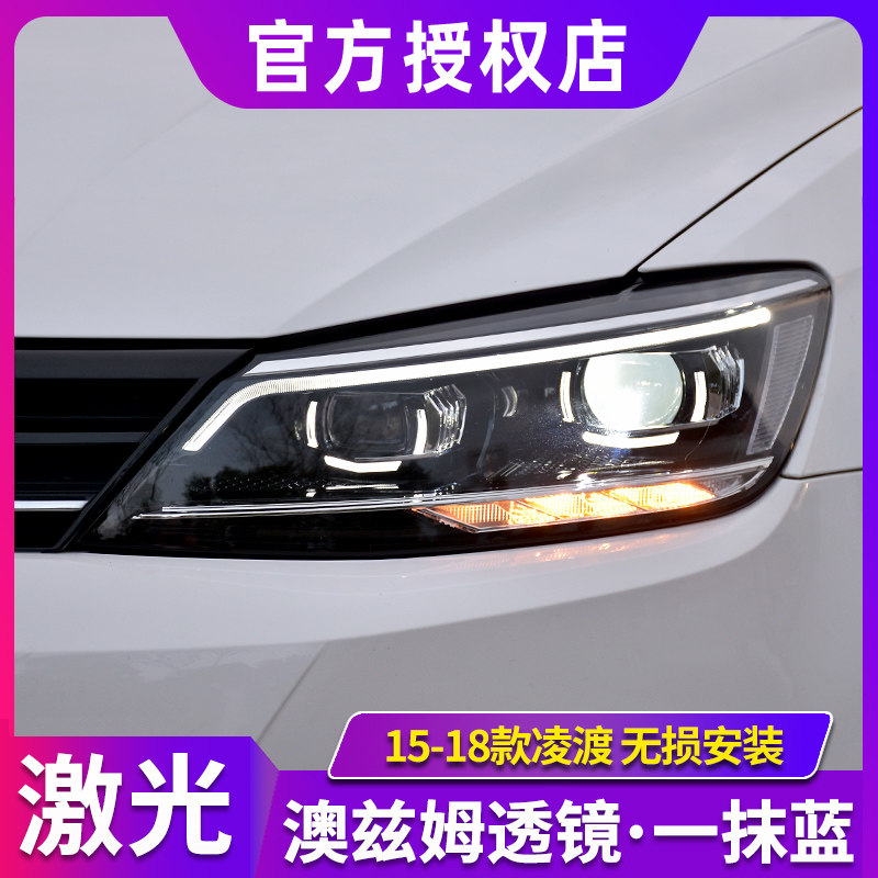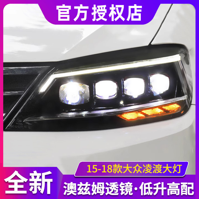 适用大众凌渡大灯总成 15-18款凌度改装高配U型LED日行灯激光透镜