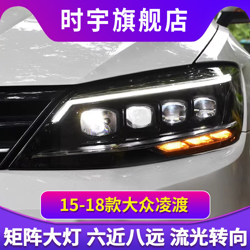 适用于凌渡大灯总成15-18款新凌度改装LED大灯日行灯流水矩阵透镜