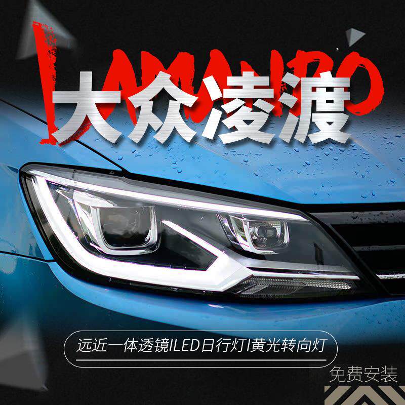 适用于大众凌渡大灯总成13-18凌度改装LED大灯透镜日行灯一抹蓝