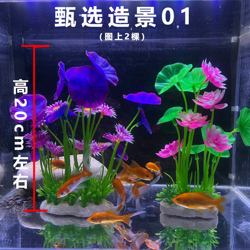 鱼缸造景仿真荷花水草水族箱内装饰塑料假花套装养鱼水草植物彩石