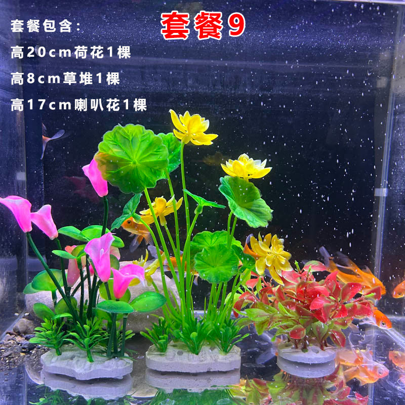 小鱼缸造景装饰仿真水草植物塑料水族箱布景摆件荷花全套套餐内饰
