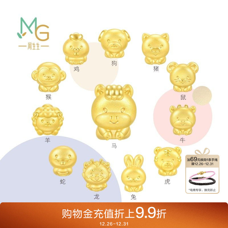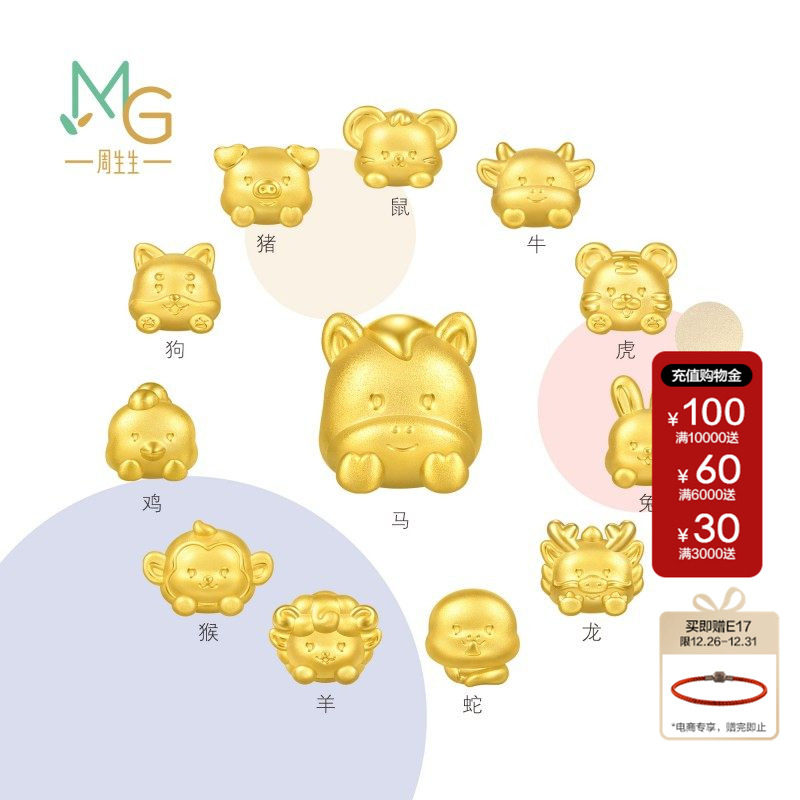 周六福黄金5d硬金转运珠定价女蛇十二生肖马抱元宝招财圣诞礼物