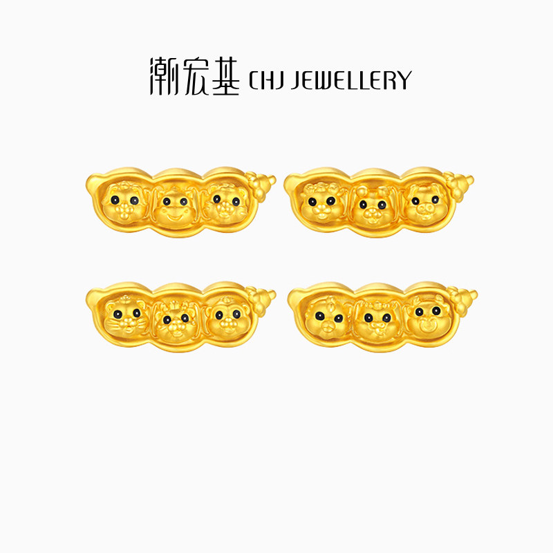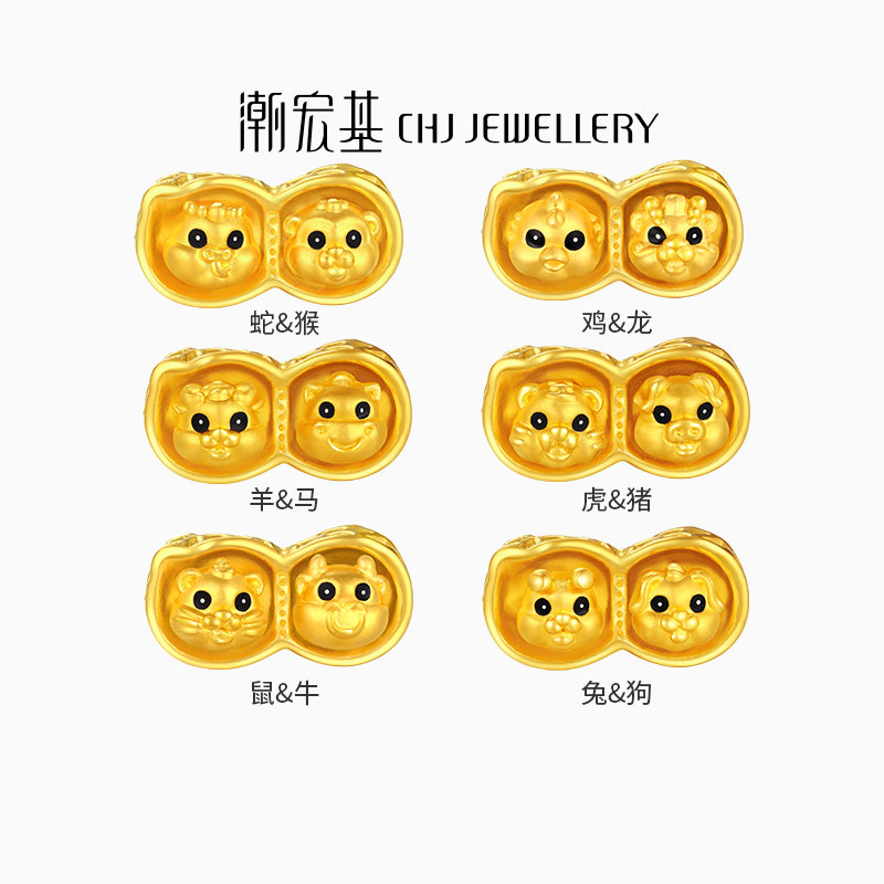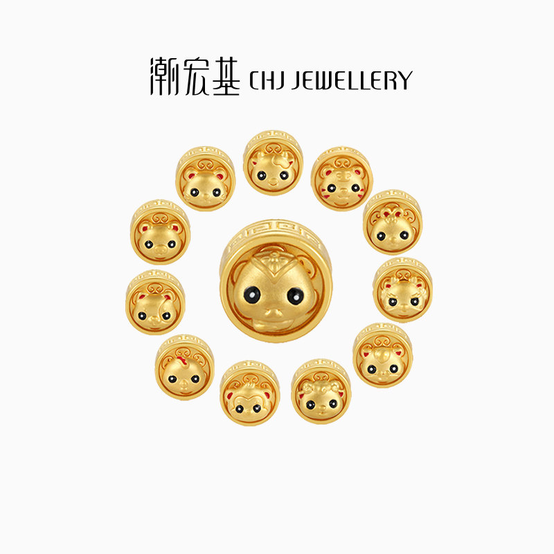 潮宏基臻金弘十二生肖黄金串珠足金转运珠手饰5D硬金珐琅可转动