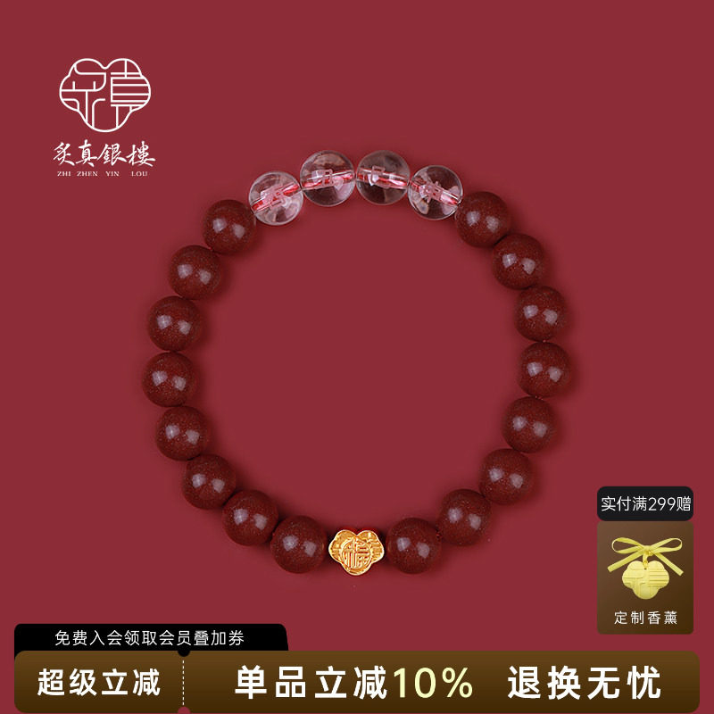炙真银楼三合六合朱砂手串女款生肖黄金平安锁水晶蛇年本命年手链