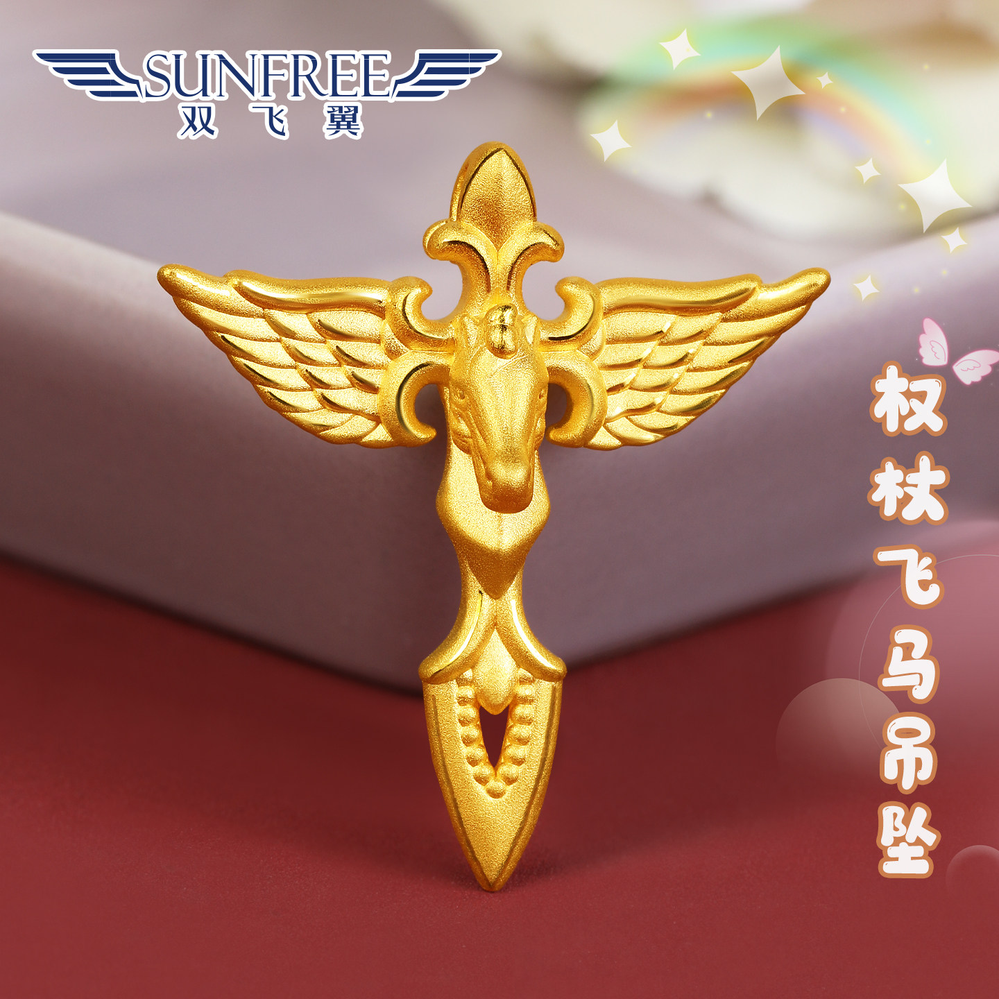 马年生肖黄金权杖飞马吊坠项链时尚大气足金999送礼生日女本命年