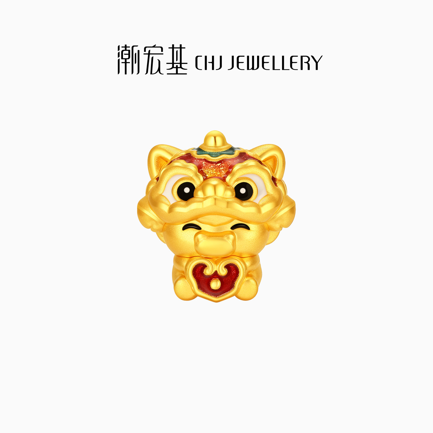 潮宏基喜狮马年生肖黄金转运珠足金串珠5D硬金宝宝新年本命年礼物