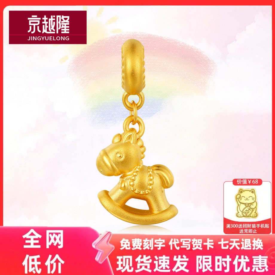 足金马生肖黄金手链吊坠马年礼物女金马属马本命年金饰小木马挂坠