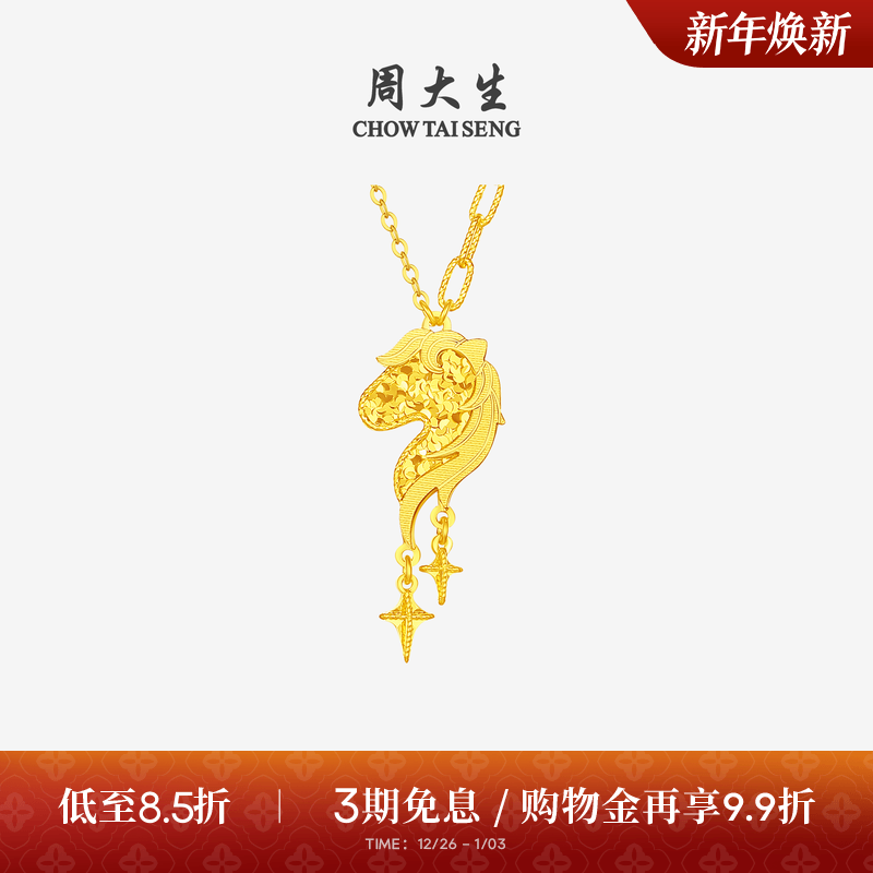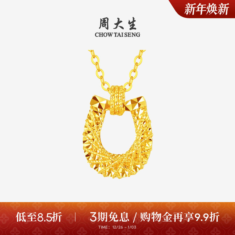 周大生马年生肖黄金吊坠女5G足金碎碎冰马蹄项链挂坠送女朋友礼物