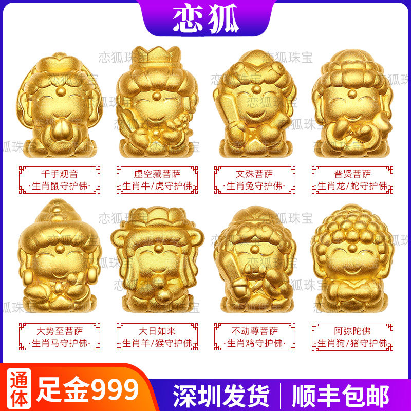 12生肖黄金本命佛 足金999八大守护神转运珠马年大势至菩萨手串