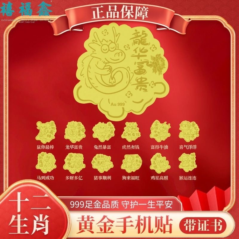十二生肖黄金手机贴足金999龙兔蛇生肖卡通贴纸马年送女友可定制