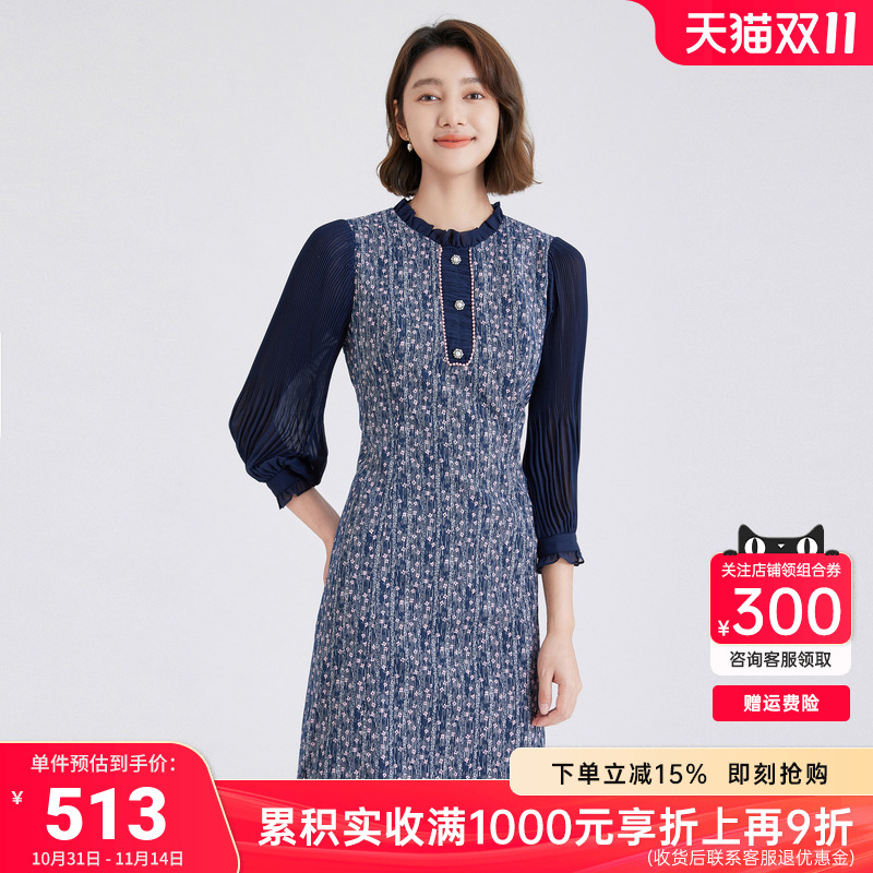 【库存告急】Buou Buou法式收腰浪漫印花七分袖连衣裙女款DJ1G004