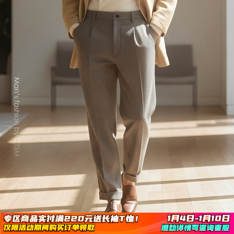 【储格】重磅羊毛休闲裤男秋冬季新款毛呢西装裤男士垂感裤子西裤