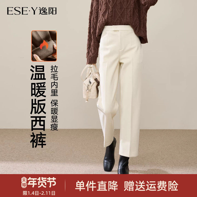 逸阳毛呢西装裤女加厚2025冬季新款烟管裤保暖直筒高腰哈伦版西裤