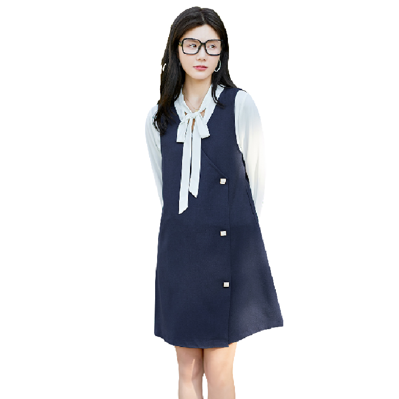 法式立领长袖雪纺圆点衬衫上衣无袖连衣裙两件套女装春季新款通勤