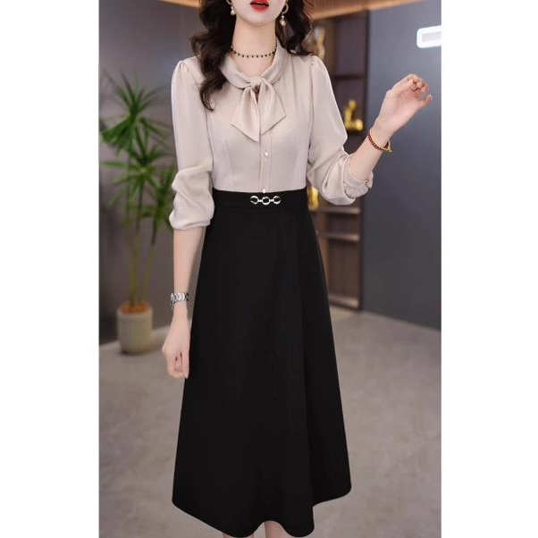 御姐长袖连衣裙2025春秋新款职业气质雪纺衬衫包臀半身裙两件套装