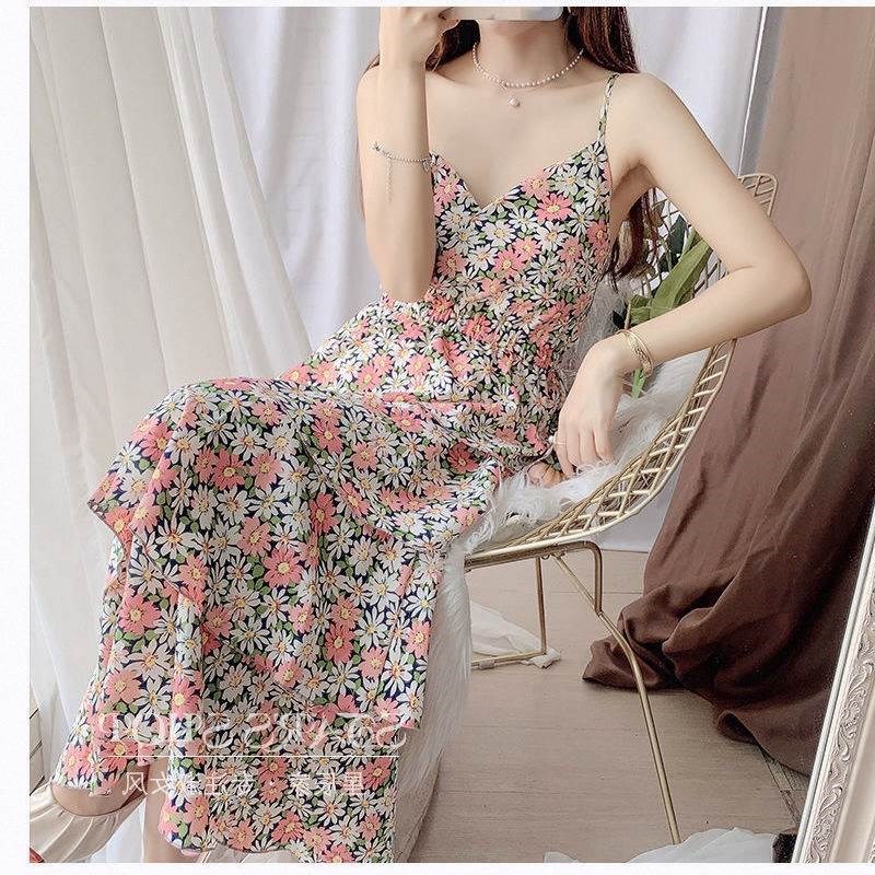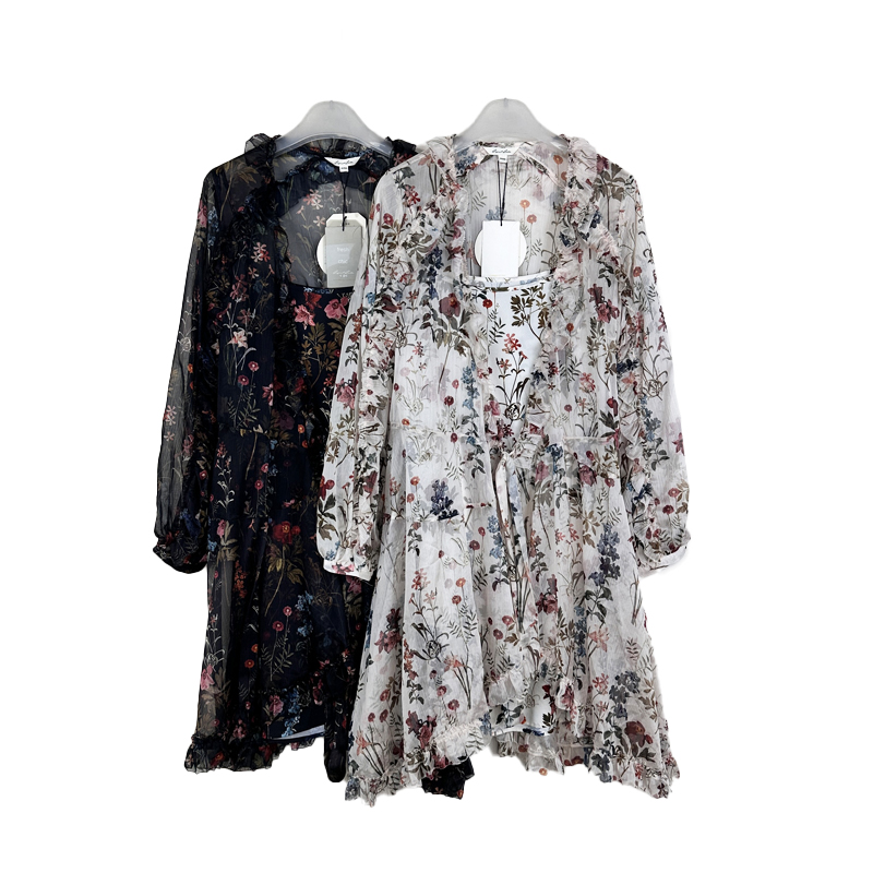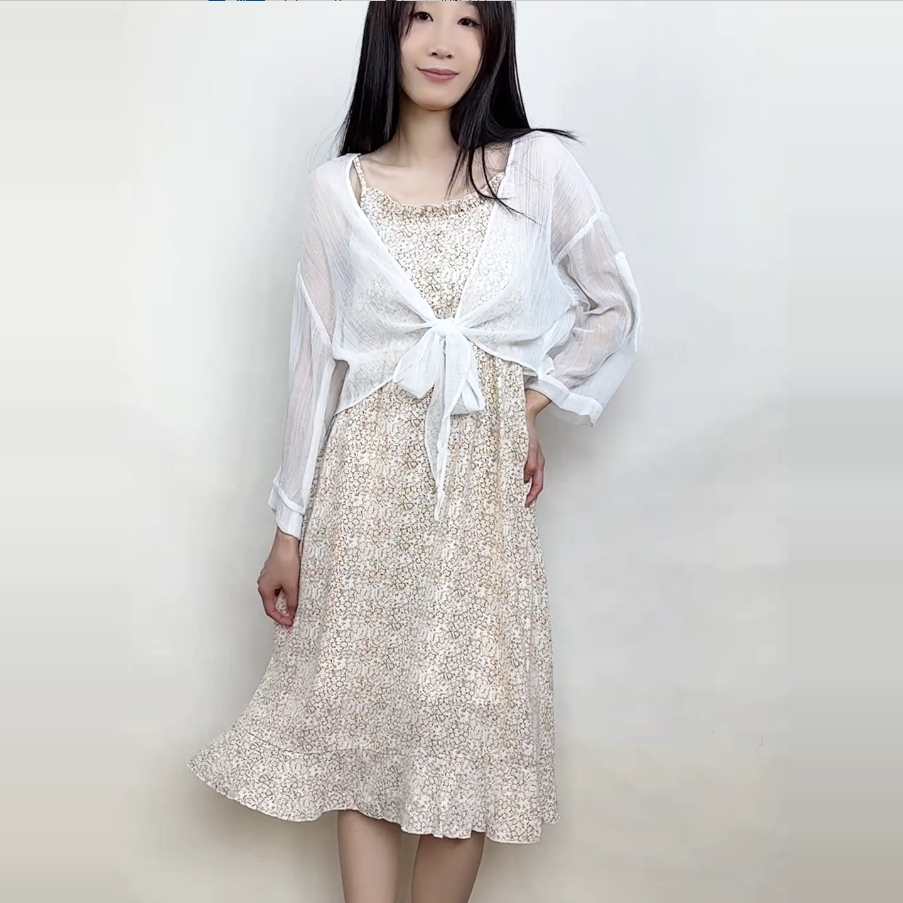 单/套装 春夏季防晒衣长袖雪纺衫吊带裙碎花连衣裙女两件套装裙子