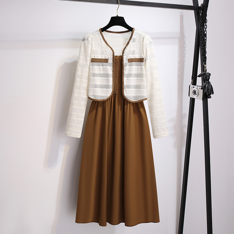 长袖开衫内搭雪纺吊带连衣裙女2025春秋季新款今年流行漂亮两件套