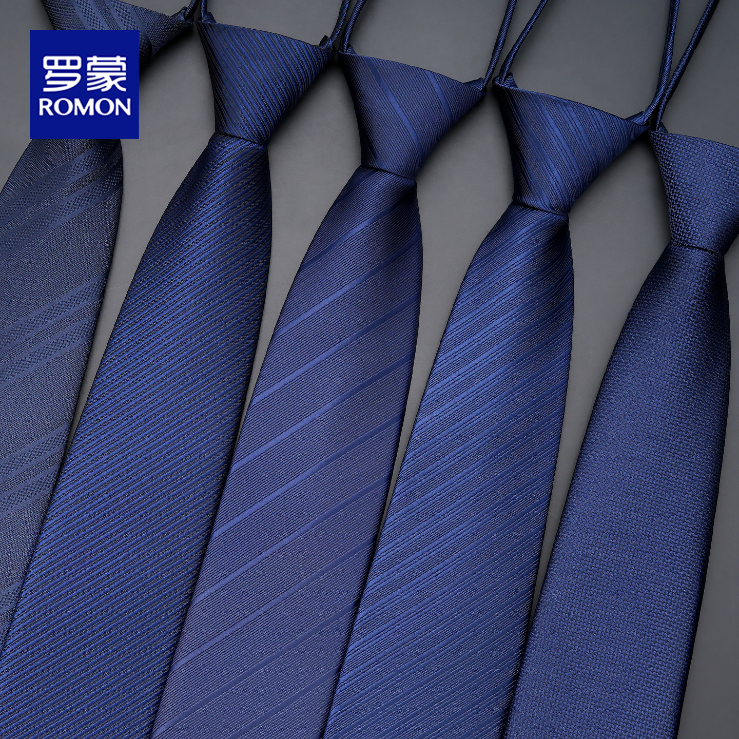 罗蒙蓝色领带男免打结正装高档拉链式休闲商务西装高级感条纹手打