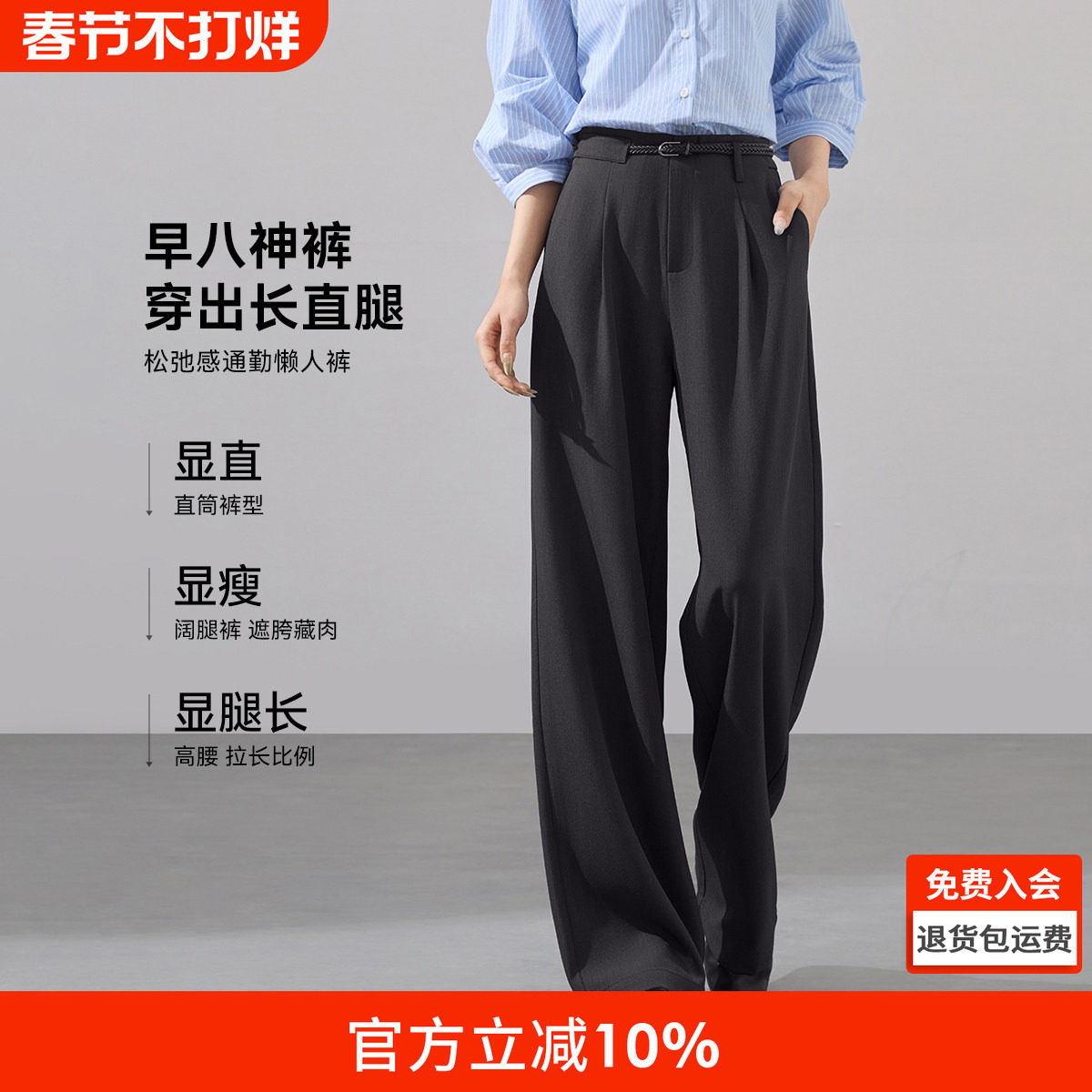 [垂顺抗皱设计感]伯爵卓尔宽松直筒西装裤秋冬季通勤休闲百搭裤子