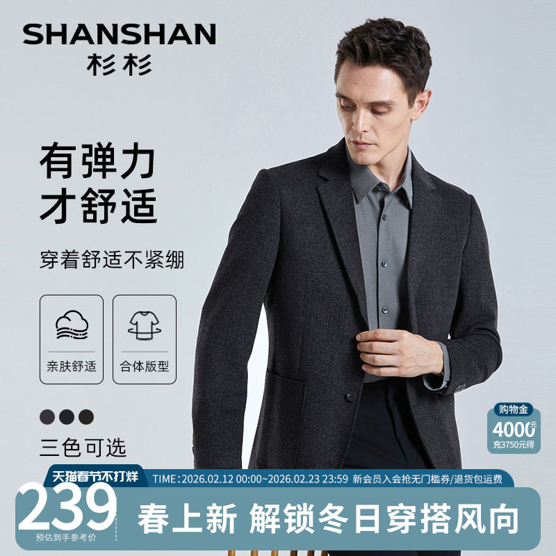 SHANSHAN杉杉品牌羊毛西装男外套2025秋季新款商务单西休闲西服男
