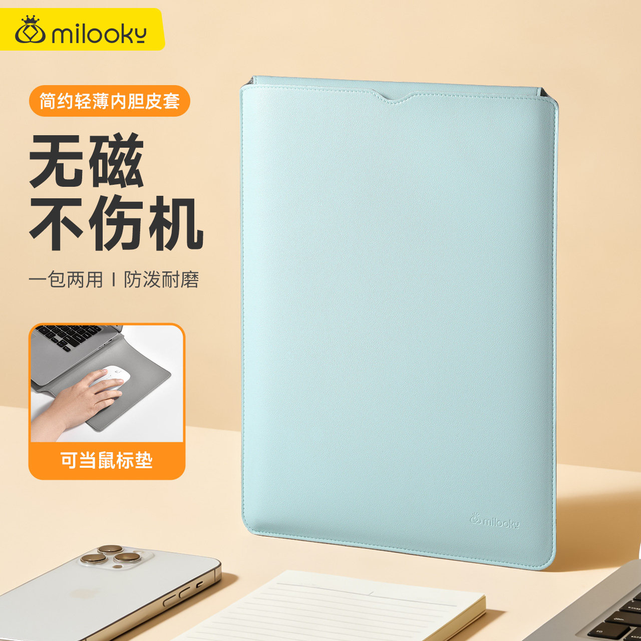 超薄笔记本电脑包内胆包鼠标垫无磁保护套皮套适用于苹果macbook华为matebook联想小新air14寸13 pro16男女15