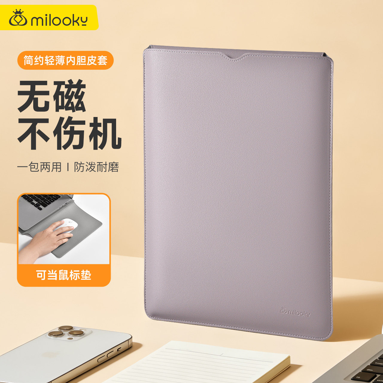 超薄笔记本电脑包内胆包鼠标垫无磁适用于苹果macbook华为matebook联想小新air14寸13 pro16男女15保护套皮套