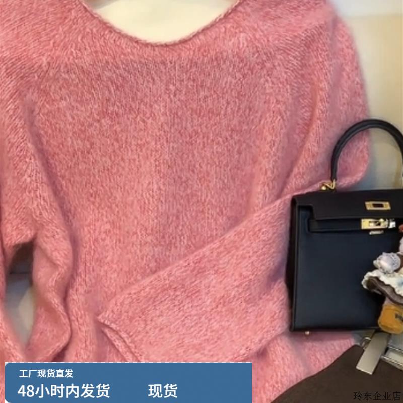 温柔慵懒风软糯针织衫女秋冬宽松软糯粉红色毛衣气质减龄大码上衣