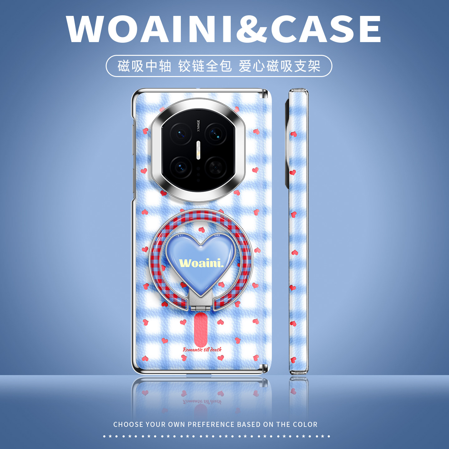 沃艾尼适用华为MateX7手机壳高级小羊皮x6典藏版磁吸爱心支架x5不沾指纹x3甜美荣耀magicV5薄vivo折叠保护套