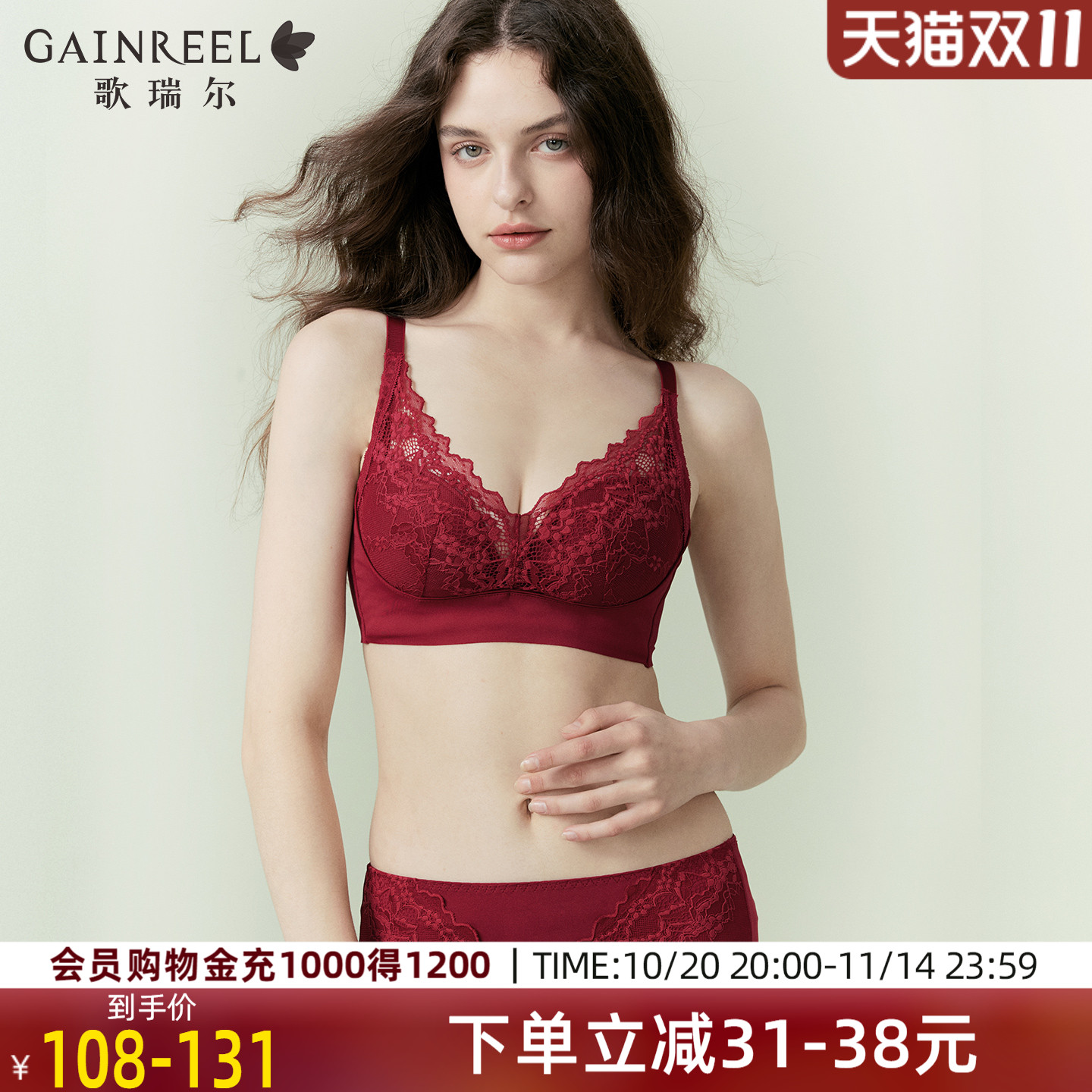 歌瑞尔红色本命年性感内衣防下垂收副乳聚拢无钢圈结婚新婚文胸罩