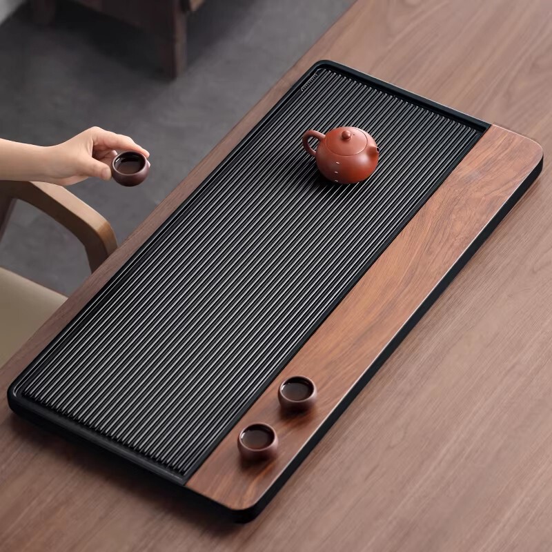 一条黑胡桃木茶盘家用实木茶台简约日式茶海储水排水功夫茶具套装
