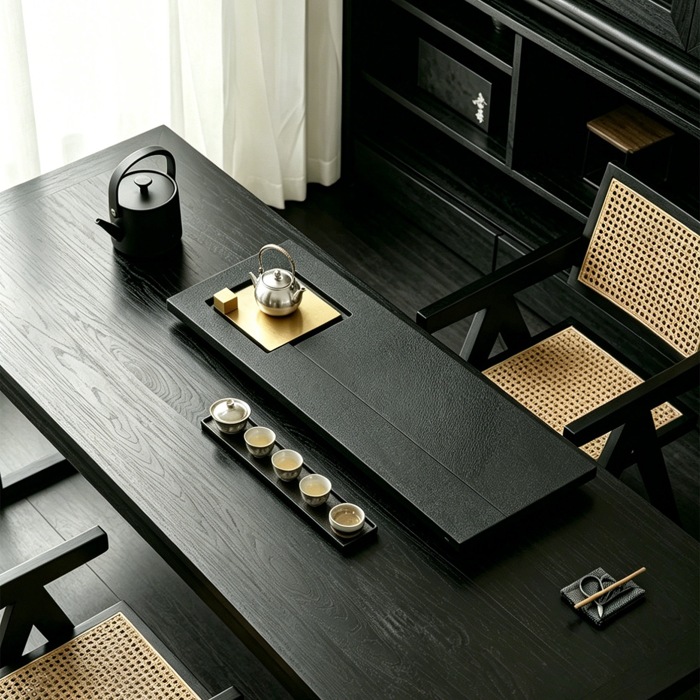 设计师茶盘2026新款轻奢黄铜家用黑金石高端茶台进口乌金石茶海