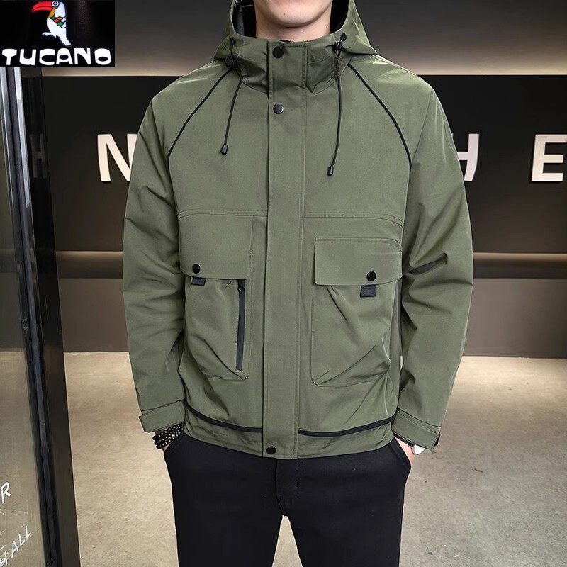 啄木鸟工装连帽夹克男春秋新款2025休闲痞帅美式户外冲锋衣外套