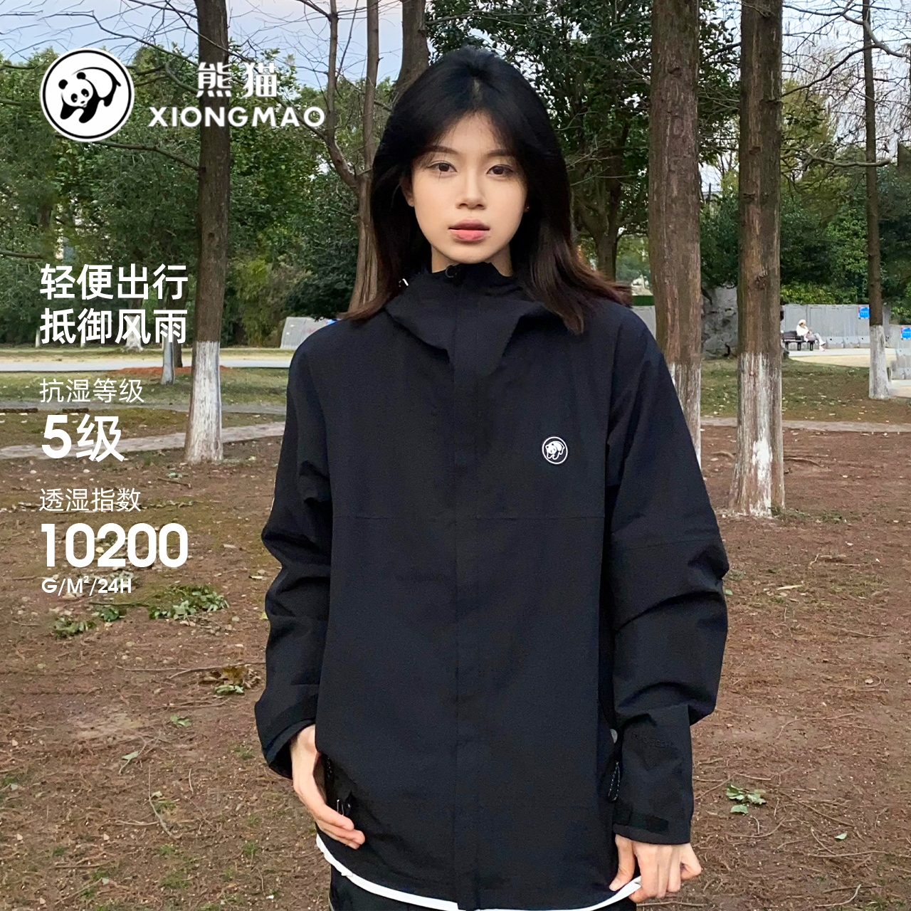 蔡徐坤同款熊猫雨壳户外冲锋衣女装外套2025防风水旅行三防登山服