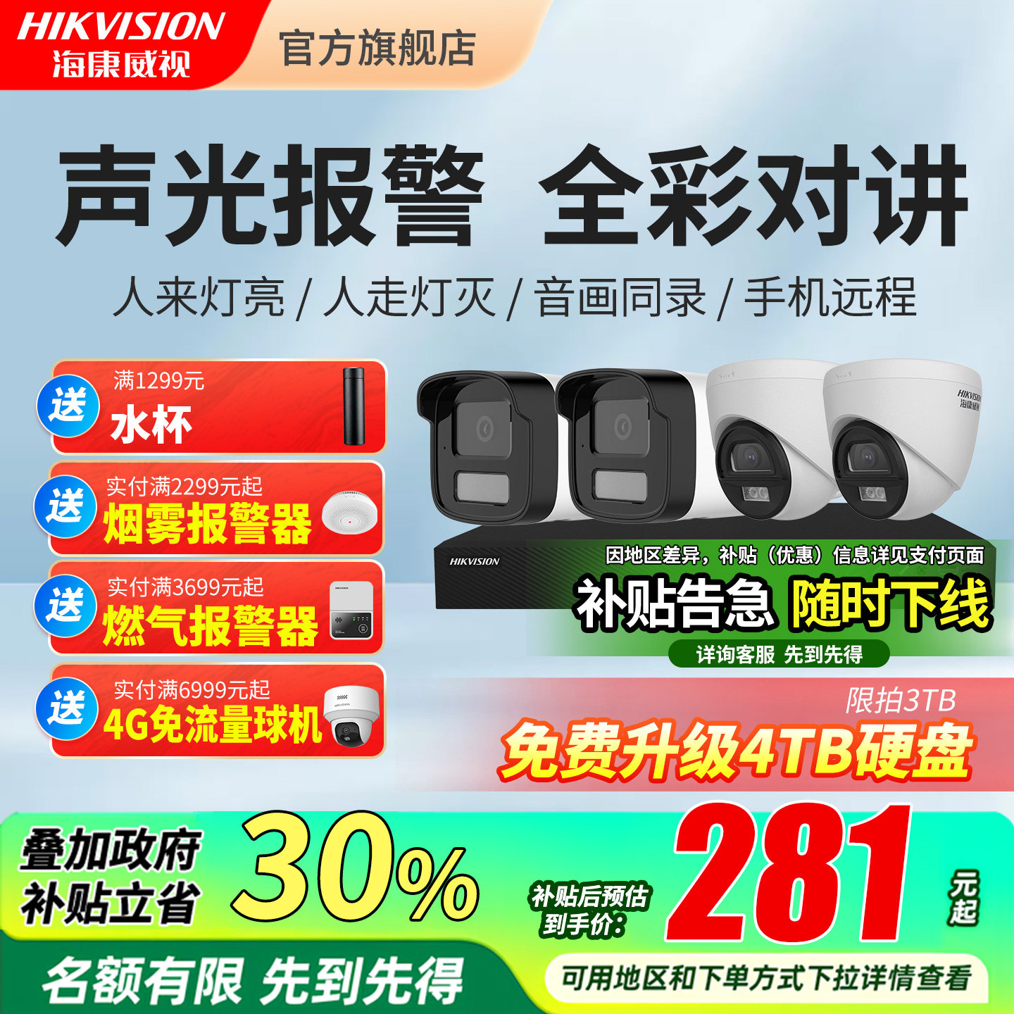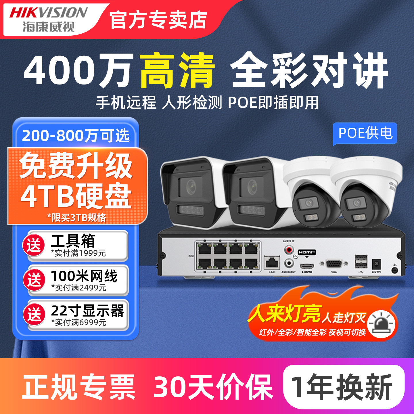 海康威视官方旗舰摄影头摄像poe监控器设备高清全套套装全彩室外