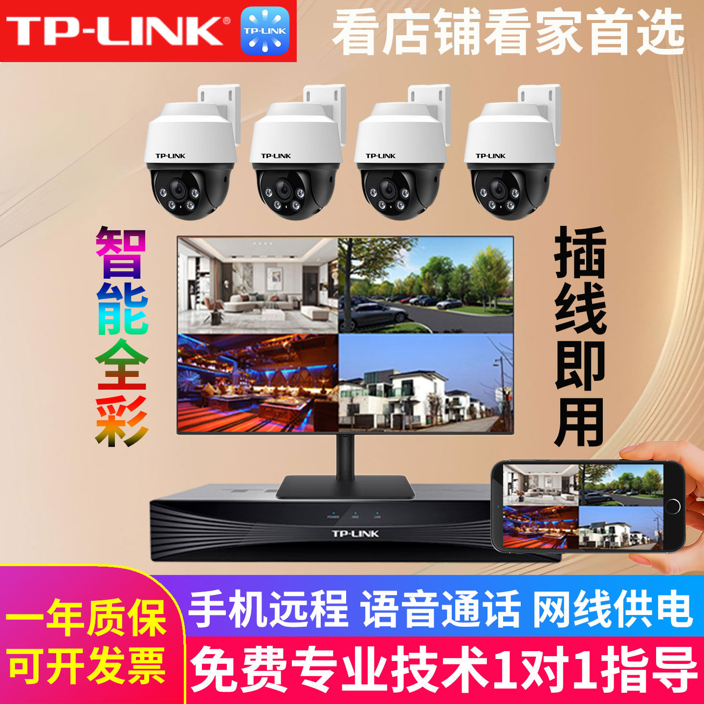 TP-LINK监控摄像头套装高清夜视室外有线poe供电超市商用家用套装硬盘录像机4/8/16路NVR兼容海康威视大华