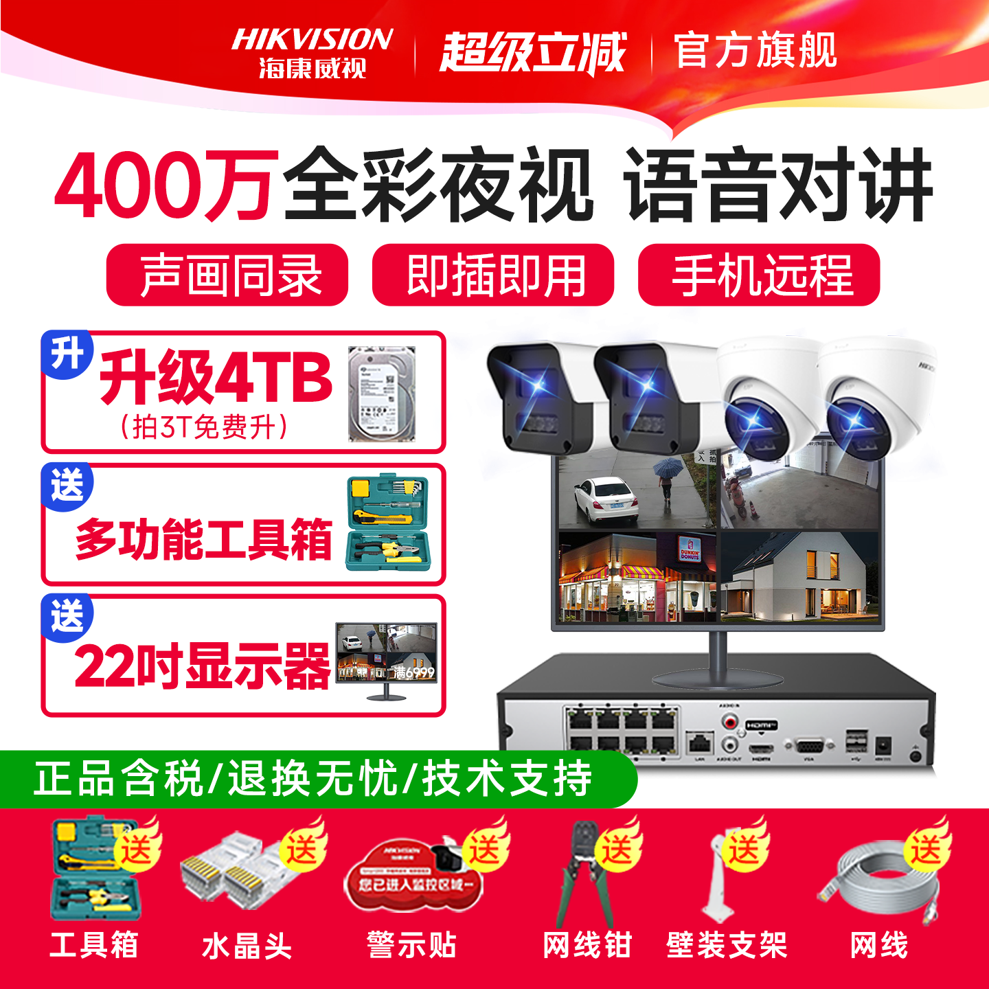 海康威视商用400万高清摄影头工厂监控器套装夜视全彩摄像机套装
