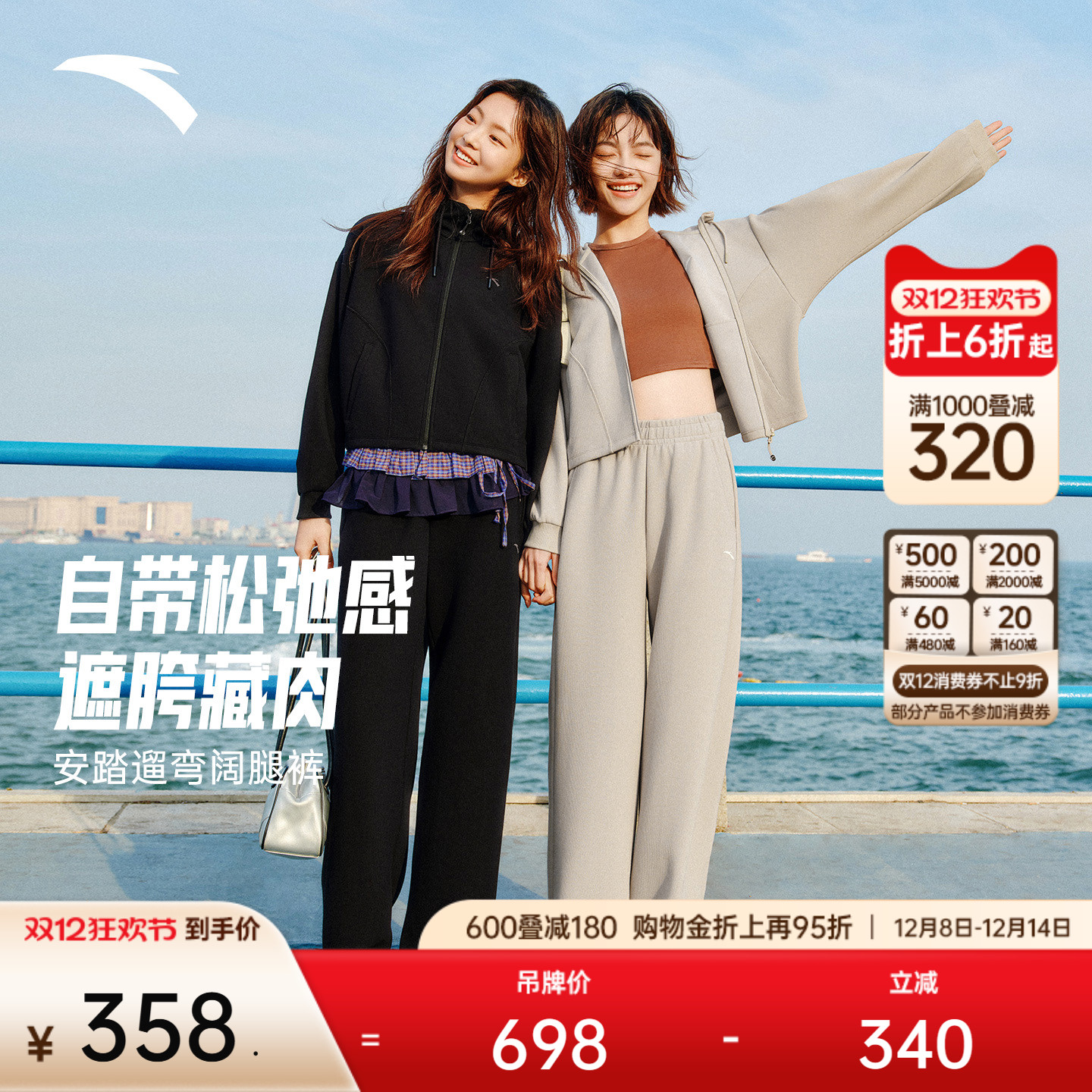 安踏遛弯套装丨松弛感休闲开衫运动服女冬季新款百搭外套阔腿长裤