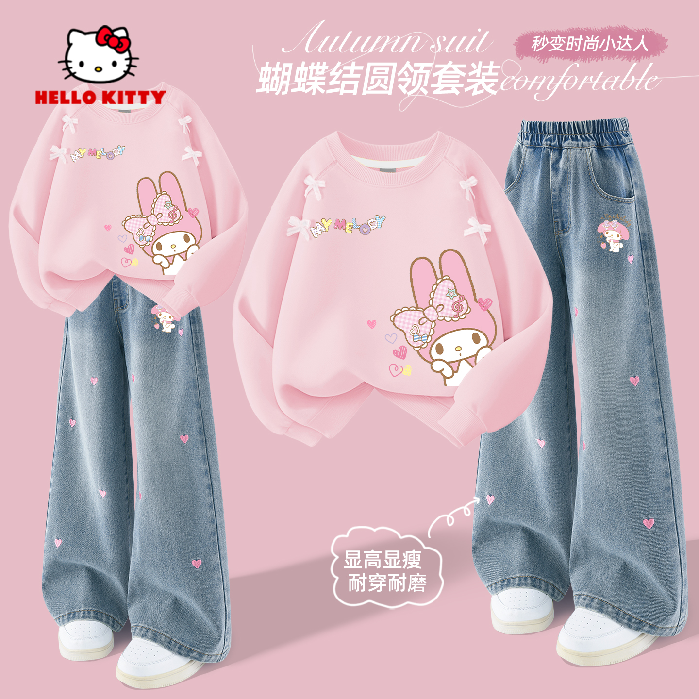 美乐蒂衣服女童秋套装2025新款粉色蝴蝶结卫衣儿童衣服阔腿裤秋款