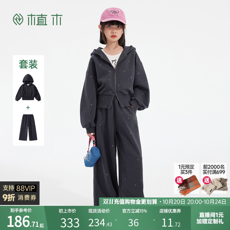 植木童装 儿童套装2025秋冬新款中大童卫衣阔腿裤套装女童套装