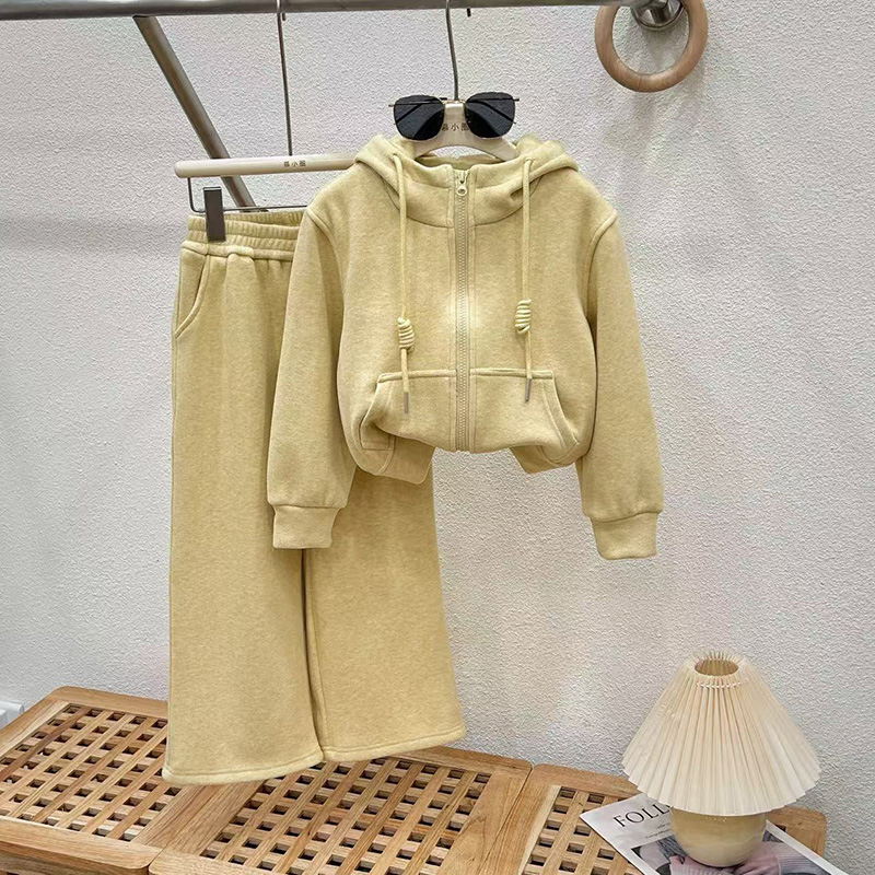 左西女童套装春秋冬款外套2025新款儿童加绒卫衣阔腿裤两件套运动