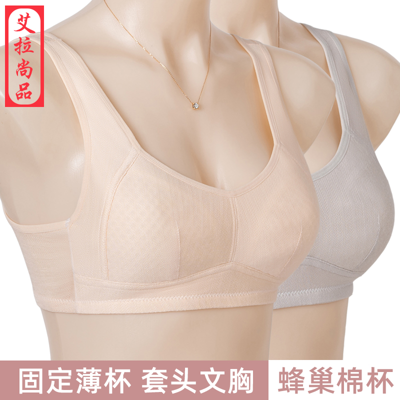 透气蜂巢固定棉杯妈妈文胸 套头背心内衣薄款中老年纯棉里料胸罩