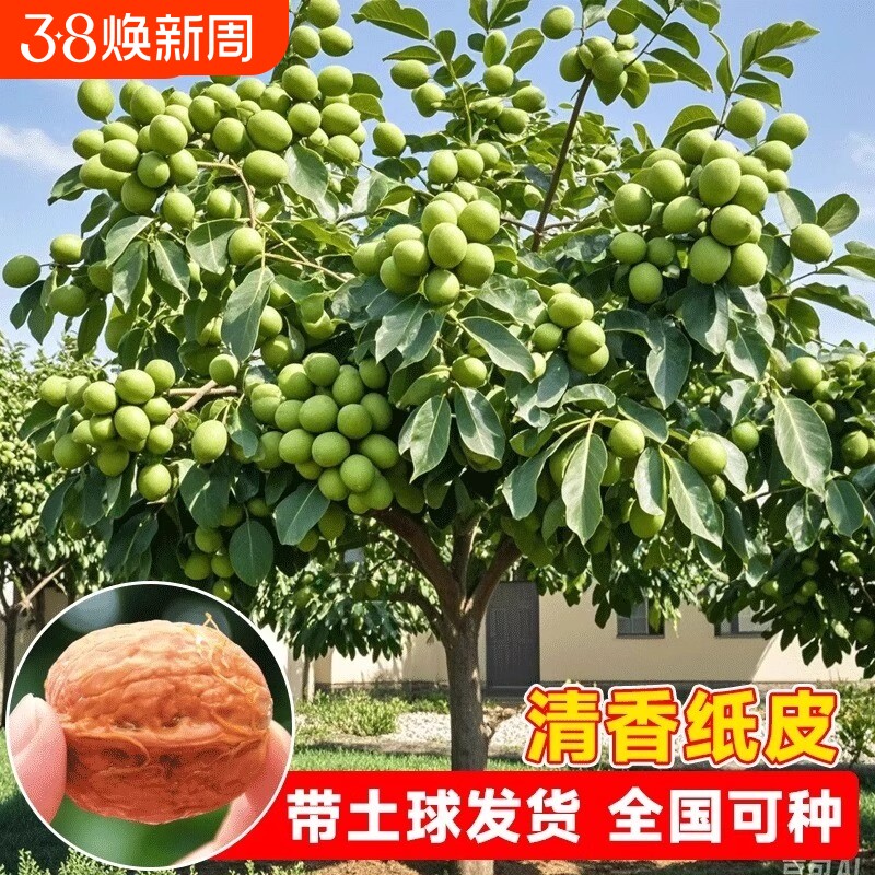 特大核桃树苗带土球嫁接果树南北方种植8518薄壳纸皮核桃当年结果