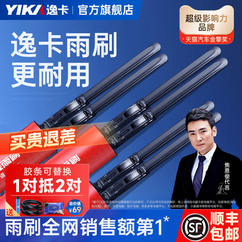 逸卡雨刮器适用大众奥迪宝马奔驰特斯拉汽车通用胶条静音无骨雨刷